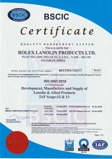 In India, Lanolin was first manufactured in 1969 by Rolex Chemicals, (now Rolex Lanolin Products Limited). Since then, the company has evolved into a modern, process-driven organization with a state-of-the-art manufacturing facility equipped with advanced processing technologies and in-house laboratories for strict quality control and quality assurance.