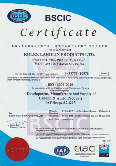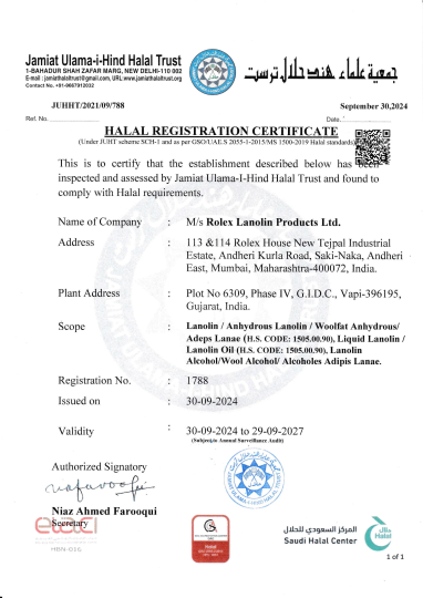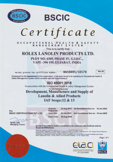 Today, RLPL serves innumerable clients across the globe, and across various industries and sectors. The company continues to focus on manufacturing excellent quality Lanolin and allied products (of various types, grades & specifications) and is ISO 9001, ISO 14001, ISO 45001 (OHSMS), GMP, Halal and FDCA Certified. RLPL is also recognized as an Export House and is AEO Certified.